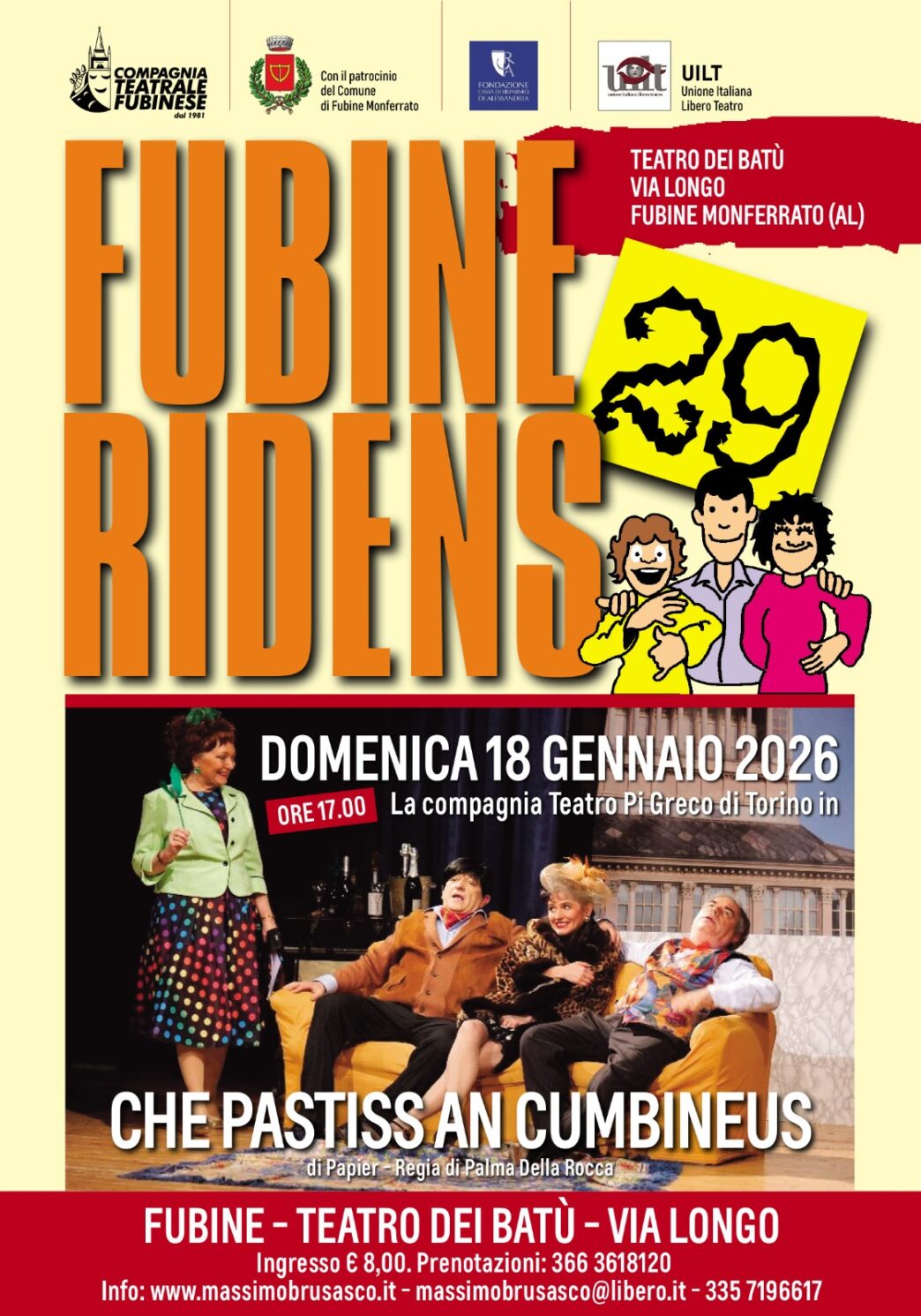 Lo scorso anno provammo, per i mesi invernali, a dirottare gli spettacoli di Fubine Ridens la domenica pomeriggio. L’esperimento ebbe successo, motivo per cui anche a gennaio e febbraio (ma pure il primo marzo) la rassegna della Compagnia Teatrale Fubinese si svolgerà nel pomeriggio del giorno festivo.