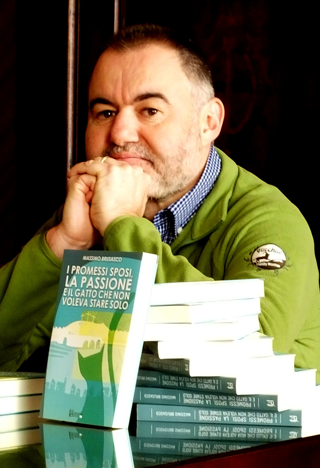 Sono nato l’8 gennaio 1970 con qualche giorno di ritardo rispetto al previsto. E la puntualità non è mai stata il mio forte. Mi chiamo Massimo per colpa di mamma e Brusasco, per colpa di padre. Vivo a Fubine Monferrato, provincia di Alessandria, fin che dura (la Provincia, si intende). Dopo eccellenti performance alle elementari e alle medie, conseguo il diploma di maturità classica al liceo Plana, dove conosco Marina, che sarebbe diventata mia moglie. Mi iscrivo all’Università di Alessandria, senza successo; mi iscrivo all’Università di Genova, senza successo. Mi iscrivo alla Pro loco, ma anche al Fai, alla Uilt, all’Aido (anno 2024: fondiamo il Gruppo Aido di Fubine: sono presidente) . Ho pure la tessera punti di un paio di supermercati. Vanto, in curriculum, esperienze editoriali gratificanti e gratuite con testate locali. Ora, giornalista professionista, sono redattore del bisettimanale Il Piccolo, specializzato nel di tutto un po’, dalla cronaca agli spettacoli. Mi occupo di teatro, sport e la scrittura in generale. Sono autore Siae, ho pubblicato libri e vinto concorsi letterari. Il mio unico nemico è il formaggio, ma lui non lo sa. Di solito non mi annoio.